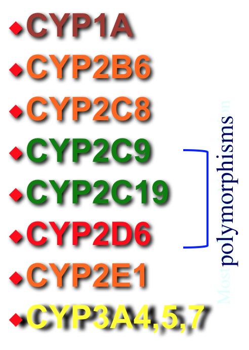 - Individual isoenzymes are identified by a number (eg. CYP3A4, CYP2D6)